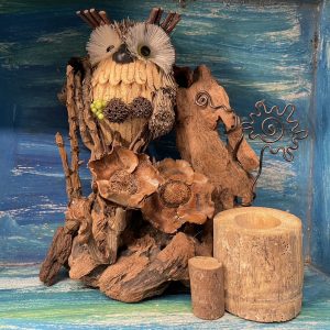 台東野女人空間-貓頭鷹核桃筆筒名片夾