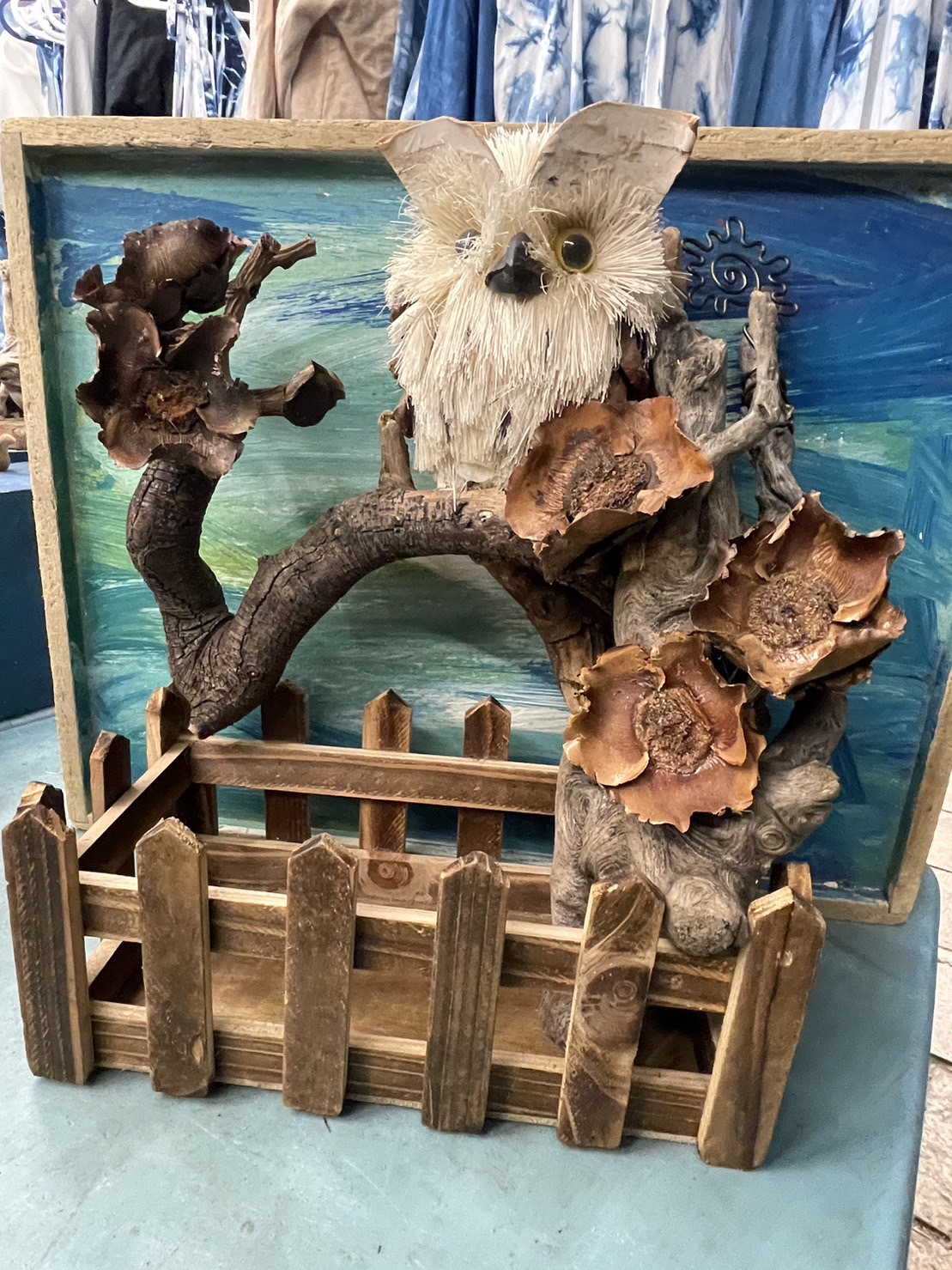 利用稻草、木頭和椰子蒂頭,及自然素材製作而成,旁邊的籃子,可用來放些小東西,讓你方便收納,不怕找不到東西,貓頭鷹代表吉祥,也象徵知識與智慧,這麼特別的造型,獨一無二、僅此一個,還不趕快下單搶購!