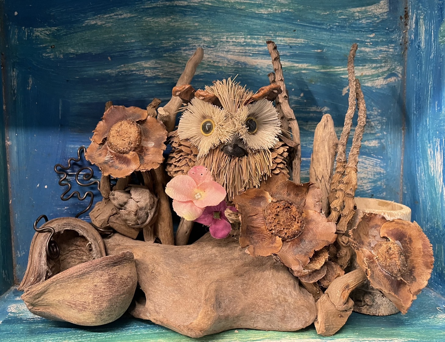 利用稻草、樹枝、木頭和椰子蒂頭,及自然素材搭配核桃製作而成,貓頭鷹代表吉祥,也象徵知識與智慧,這麼特別的造型,獨一無二、僅此一個,還不趕快下單搶購!🦉