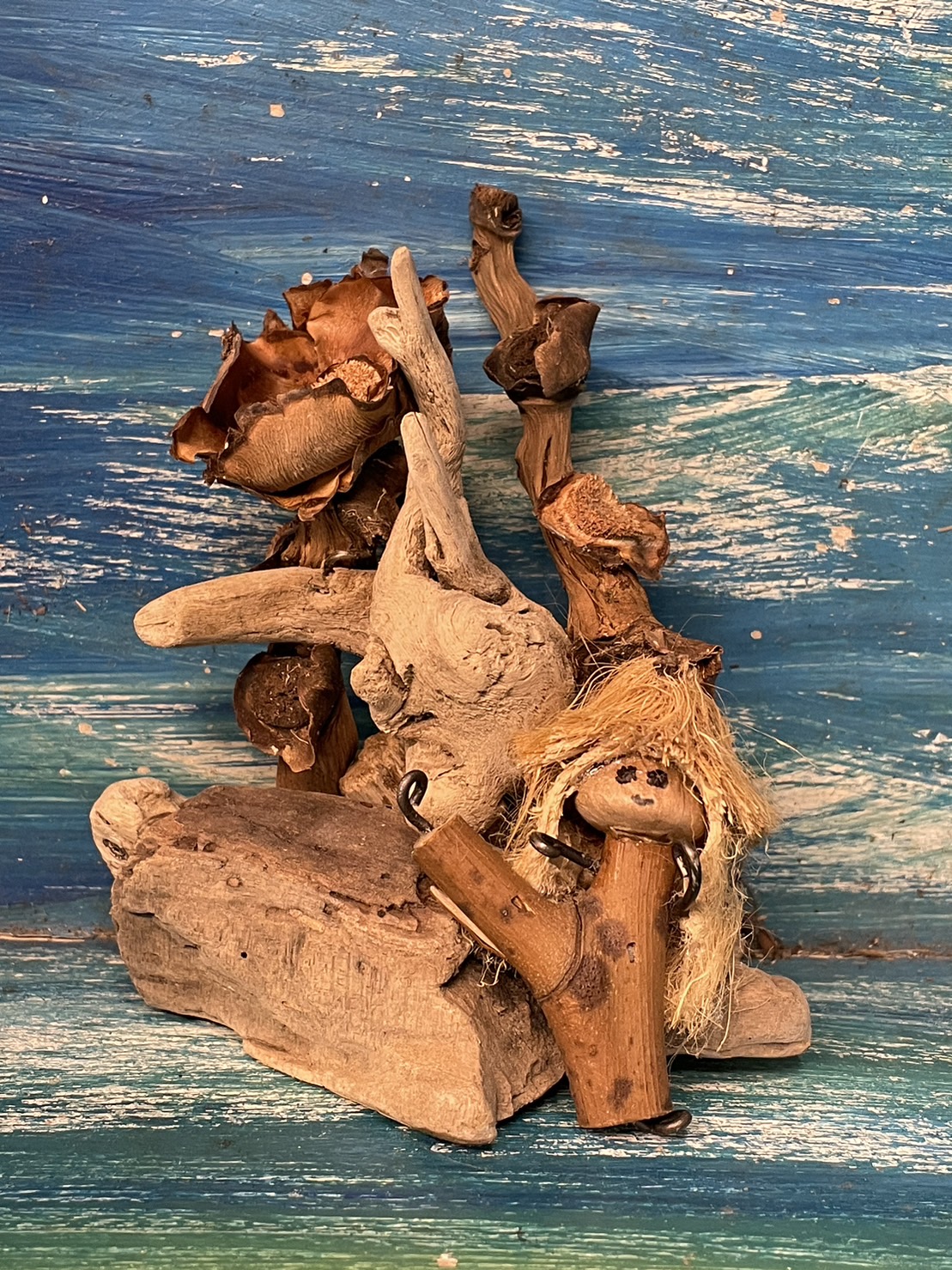利用檳榔種子及檳榔鬚做成的娃娃,搭配椰子蒂頭和自然素材完成的擺設,看似簡單卻有種華麗感,還不趕快下訂購買!🪵